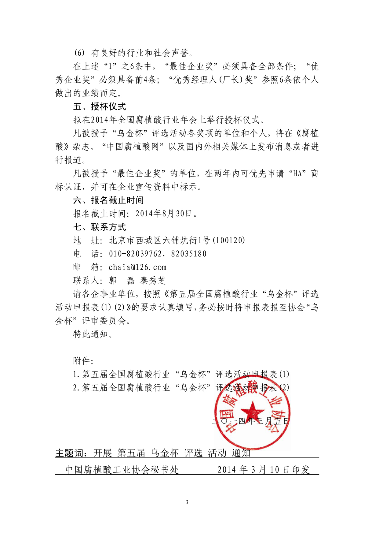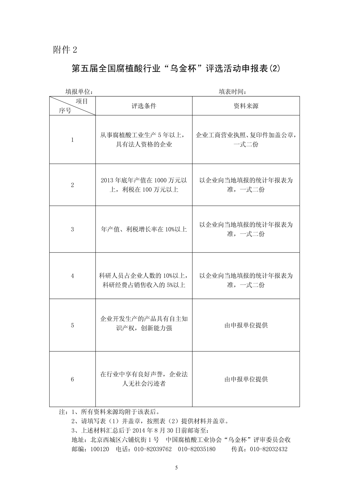 关于开展“第五届全国腐植酸行业‘乌金杯’评选活动”的通知