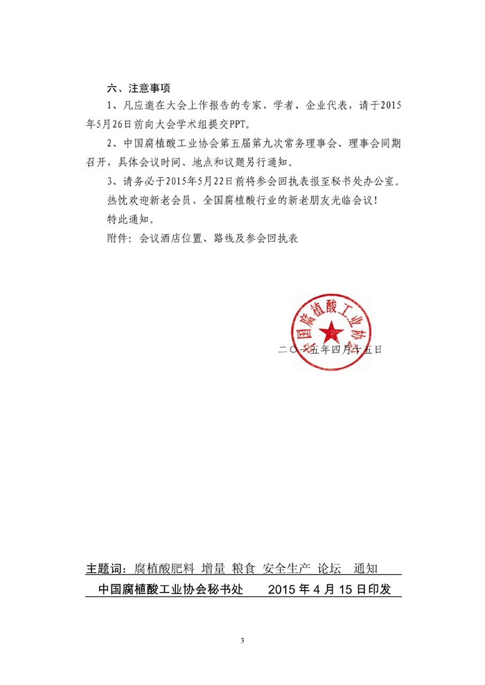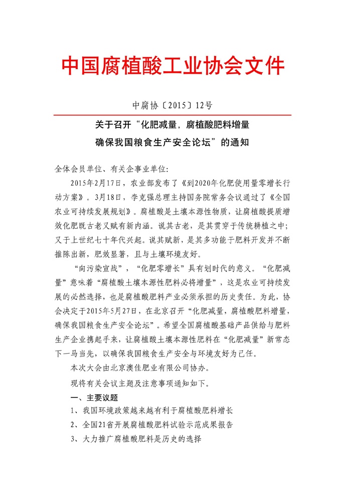 关于召开“化肥减量,腐植酸肥料增量确保我国粮食生产安全论坛”的通知