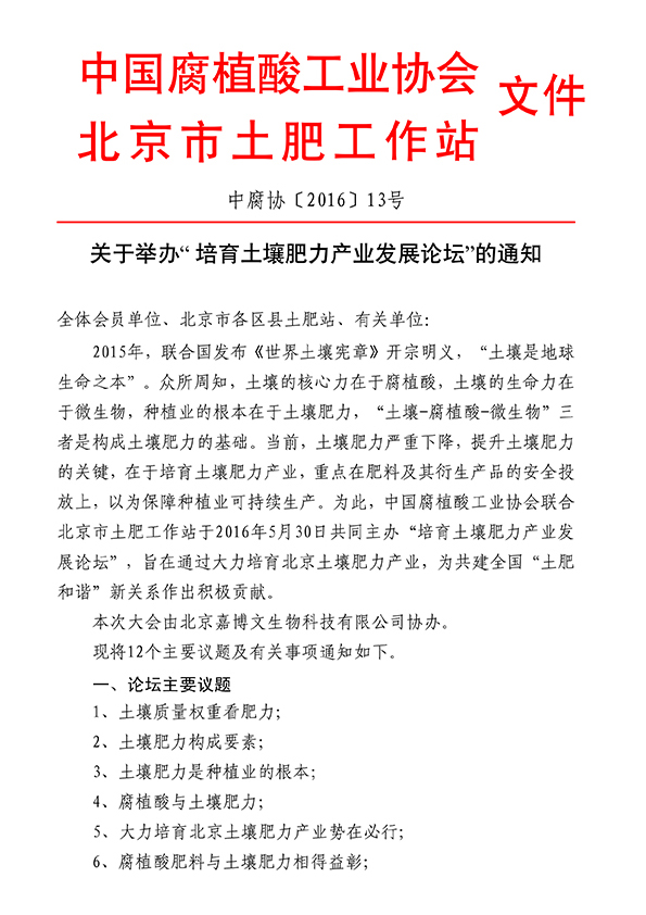 关于举办“培育土壤肥力产业发展论坛”的通知
