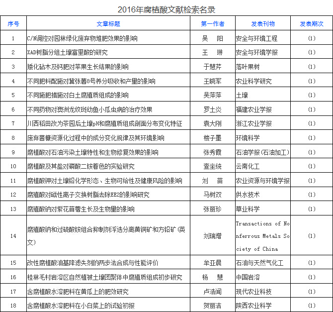 腐植酸,出水芙蓉为那般——2016年腐植酸文献检索名录一览