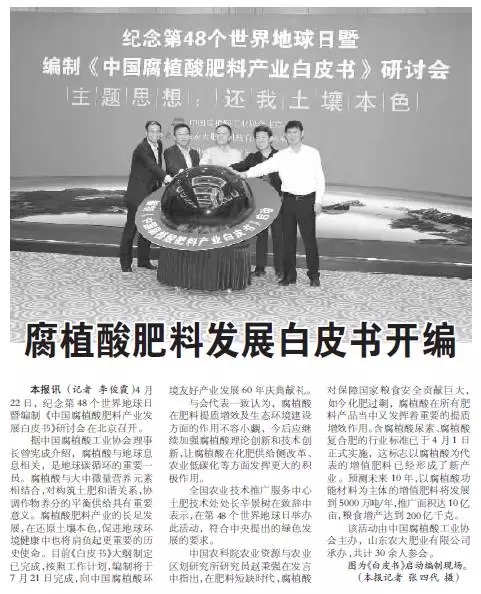 中国化工报:腐植酸肥料发展白皮书开编