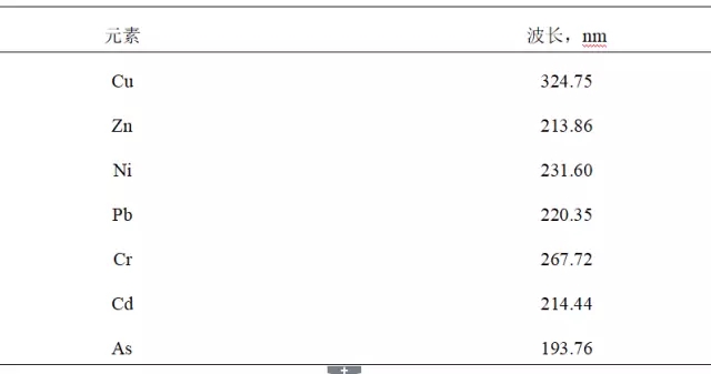 按仪器说明书,将各元素测试条件调至最佳值。各元素波长推荐值见表1。