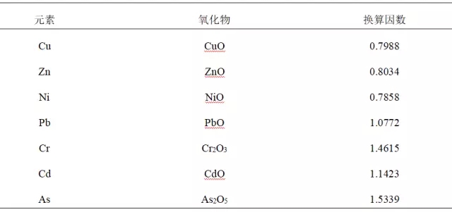 计算结果按GB/T 483数字修约规则,结果修约至小数点后三位。单元素换算为氧化物的因数见附录A。