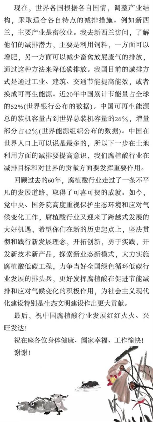 导言:2017年7月21日、22日,天风高阔,甘露降临;庆典四象,百般和谐。“纪念中国腐植酸环境友好产业发展60年暨中国腐植酸工业协会成立30周年庆典大会”、“中国腐植酸工业协会第六次会员代表大会”、“腐植酸绿色革命论坛”分别在北京人民大会堂和中国职工之家举行,庆典系列会议取得了圆满成功。今天,编发中国气候变化事务特别代表、全国政协人口资源环境委员会副主任解振华在庆典大会上的致辞全文(根据录音整理)。