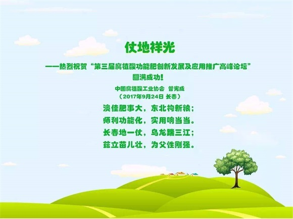 2017年9月24日,“第三届腐植酸功能肥创新发展及应用推广高峰论坛”在吉林长春举行。协会名誉会长、法定代表人曾宪成应邀出席会议作主旨报告。