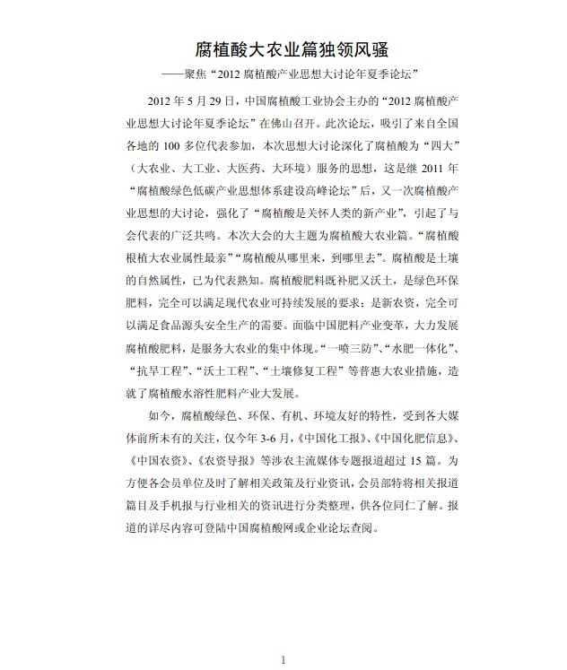 腐植酸大农业篇独领风骚——聚焦“2012腐植酸产业思想大讨论年夏季论坛”(1)